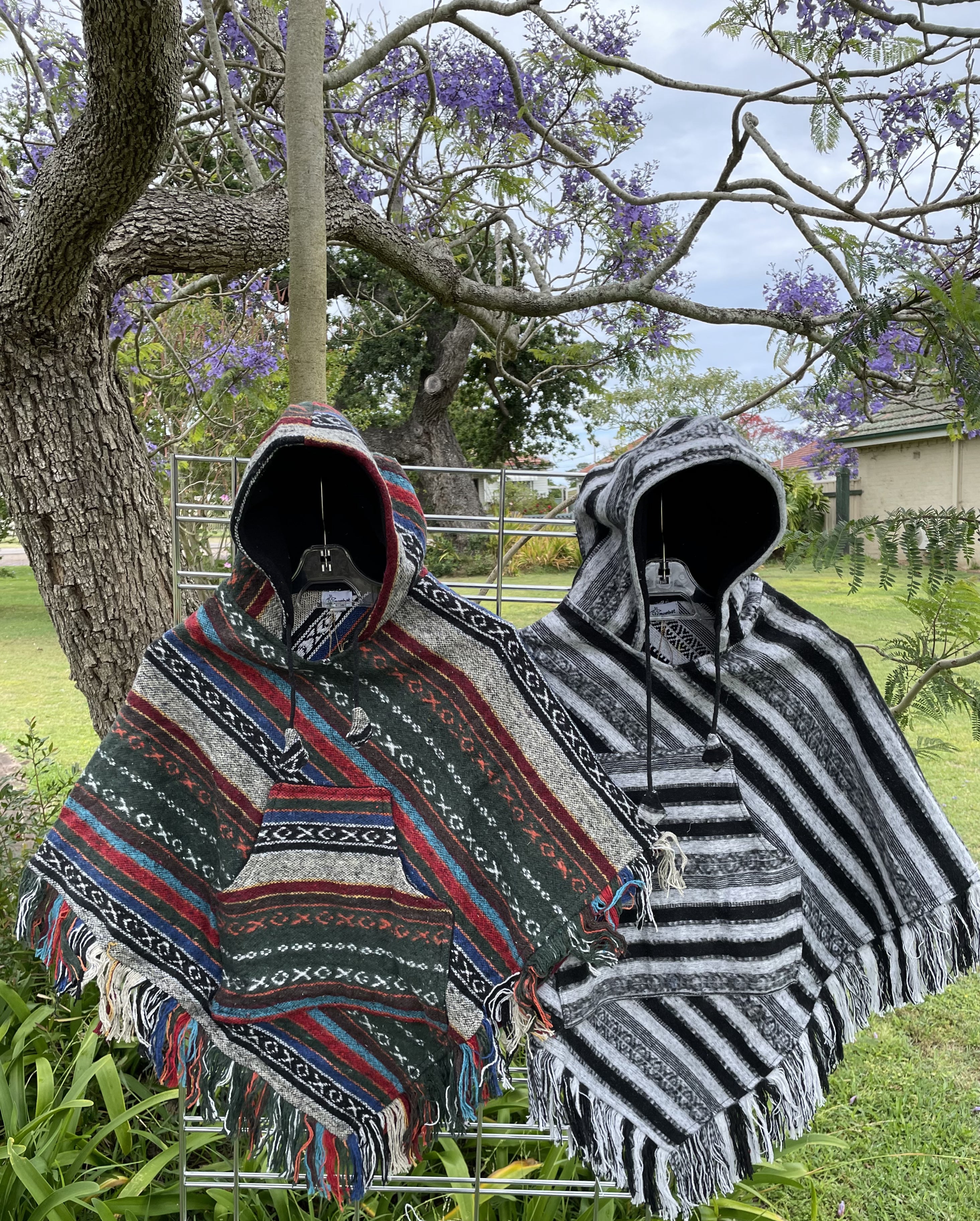 Handmade in Nepal, these 100% organic gheri cotton thick ponchos are the perfect buy for those chilly moments camping or just after a surf. Front pockets are great to keep your hands warm.