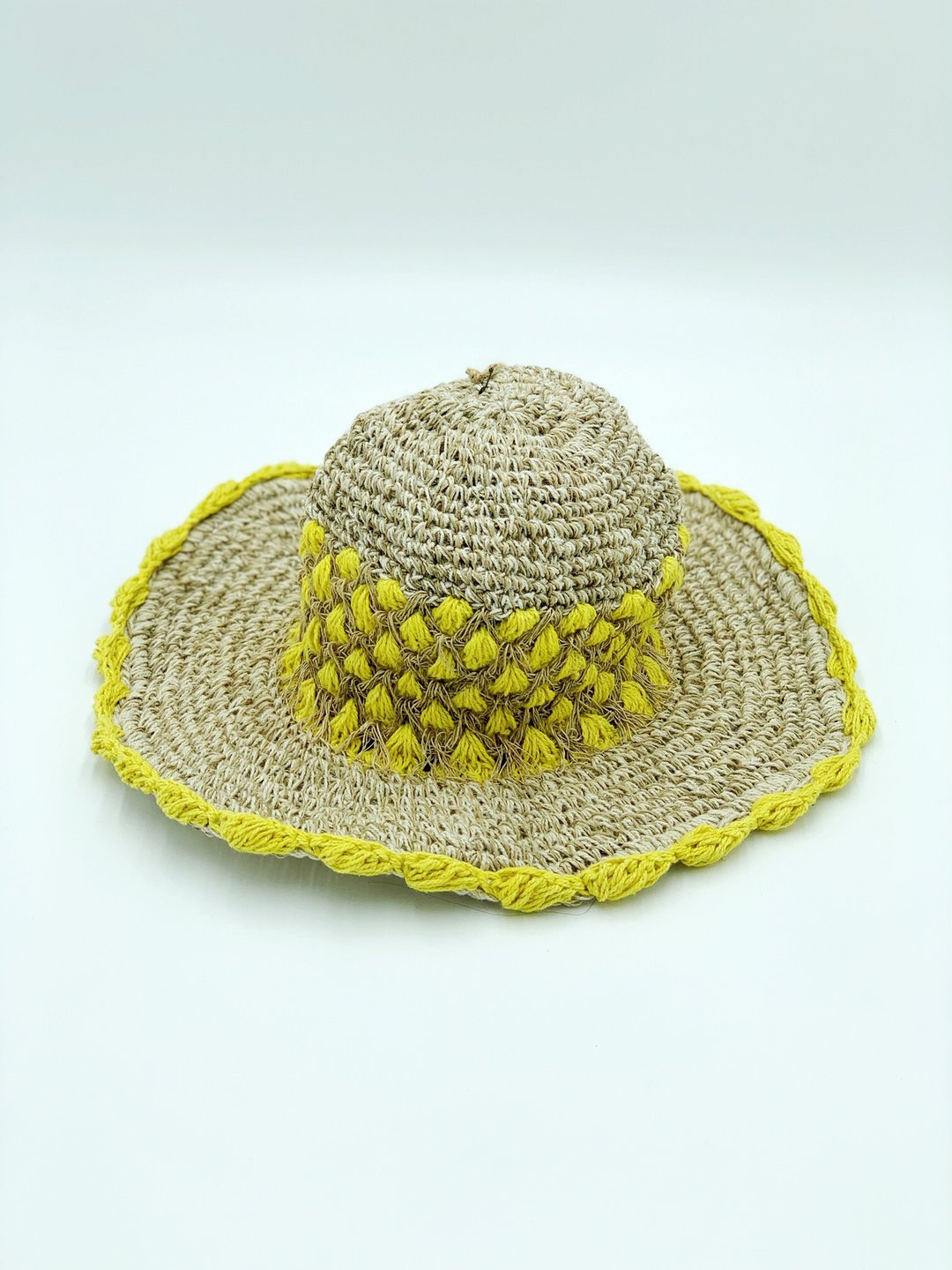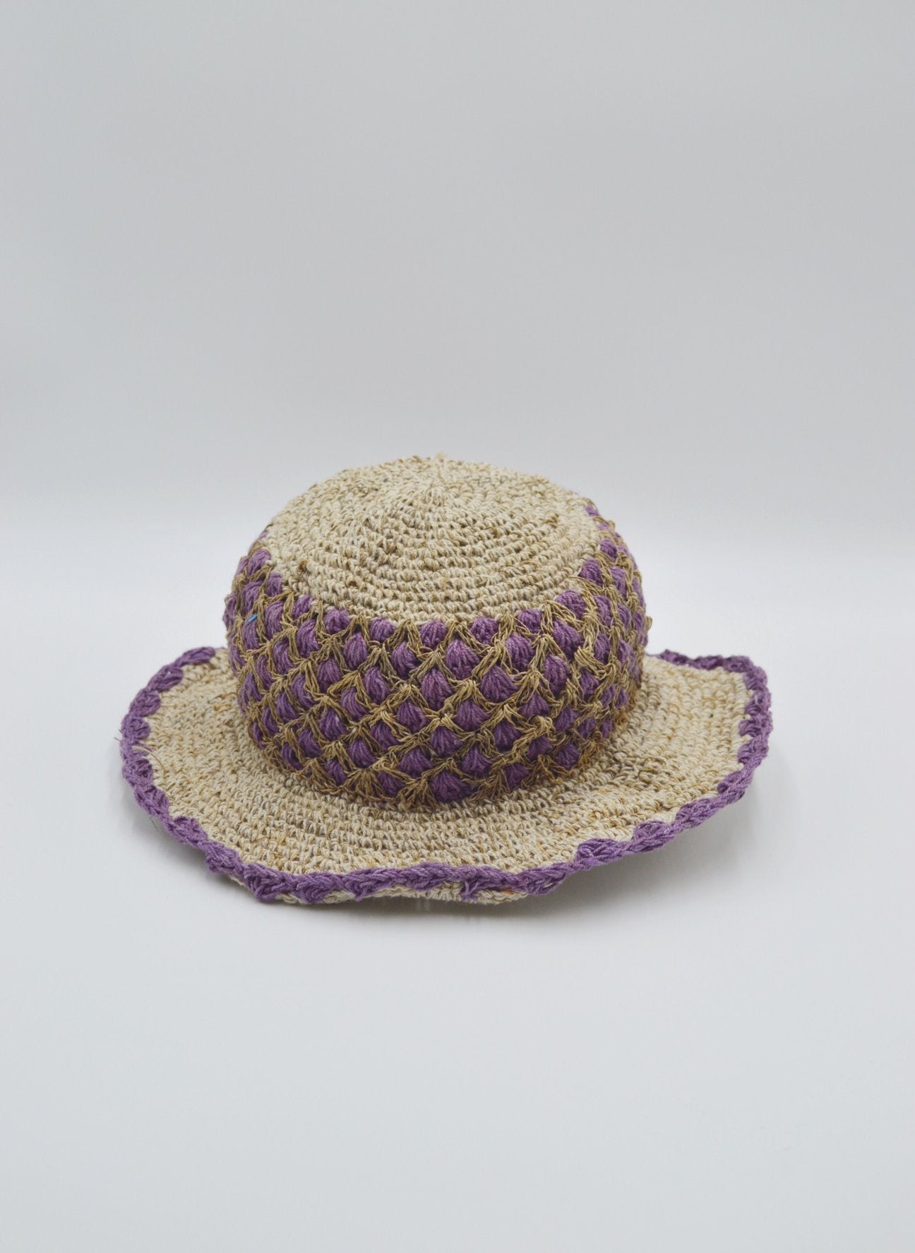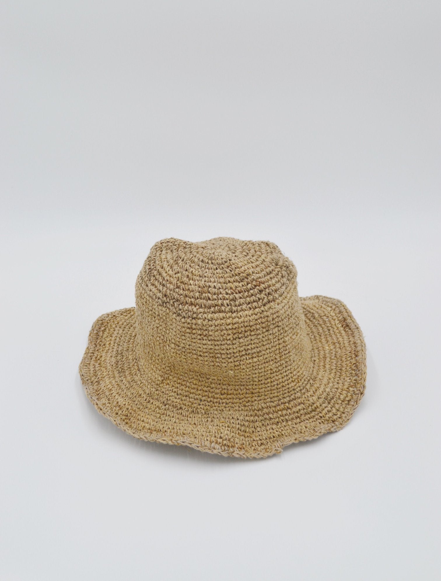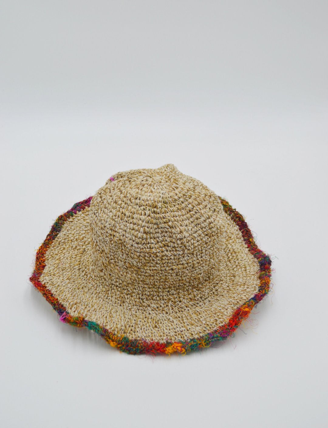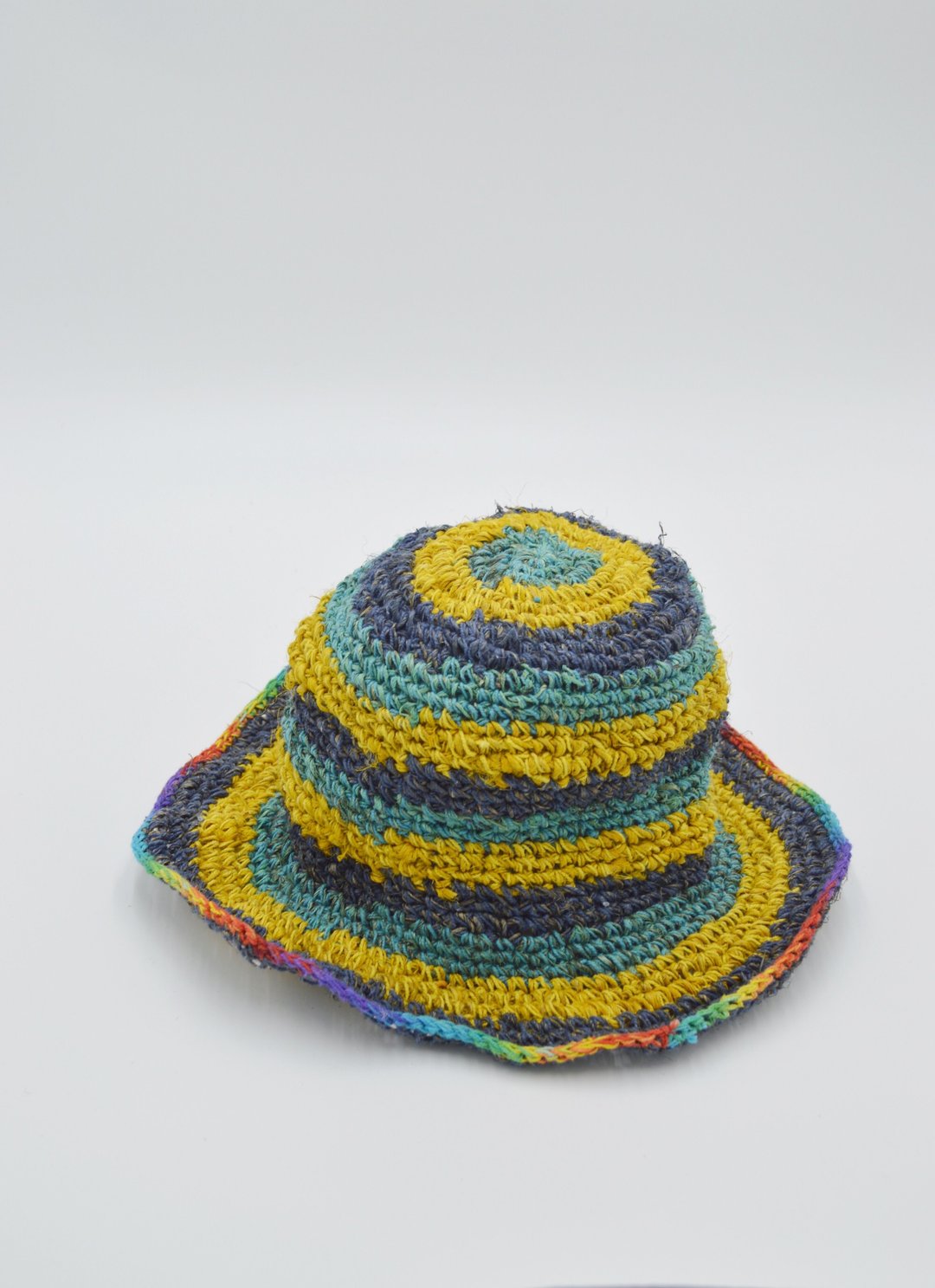 Numbat ladies eco-friendly hemp crochet hippie sunhat. The 50/50 mix of wild hemp & cotton softens the feel making it really comfortable to wear. The flexible wire brim is a feature of this hat - this hat has a wider brim giving maximum sun protection. Due to the handmade nature of this item slight variations will occur which only add to the character making every piece unique.